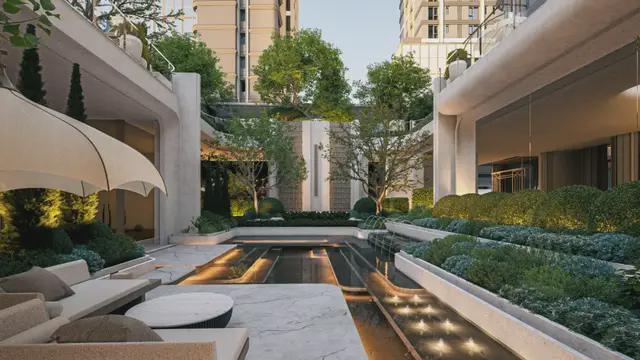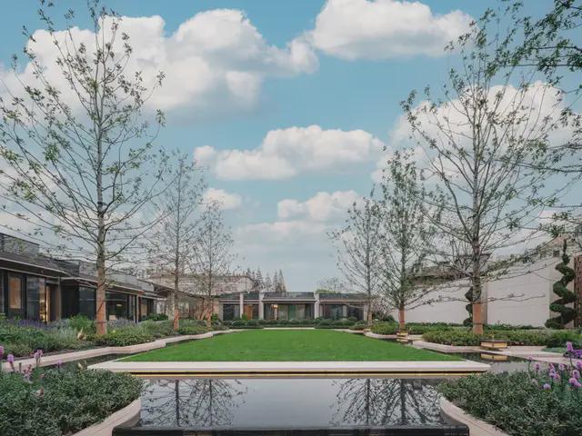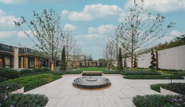 入内是移步异景的「堂前花园」,大面积草坪与水景注入静谧氛围,精致花园与潺潺流水交织,让松弛与惬意始终如影随形。