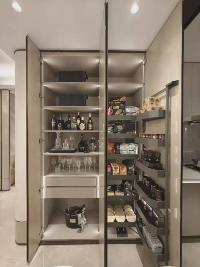 比如玄关的「入户收纳体系」,满足主人回家更衣存包的场景需求;还有餐边柜的「超级收纳体系」,内置各种层板和拉篮,让家中井然有序。