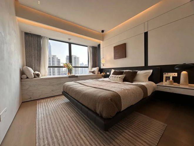 南向主卧大套房带有独立的卫浴,私密感与尊崇性拉满!远眺窗外,还能见到标志性的“三件套”,这样的景观视野是全上海都难觅的。